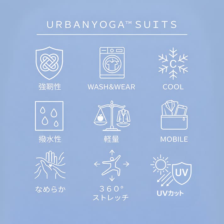 このURBANYOGA™ SUITSは、出張や移動の多い日の「モバイルスーツ」として。