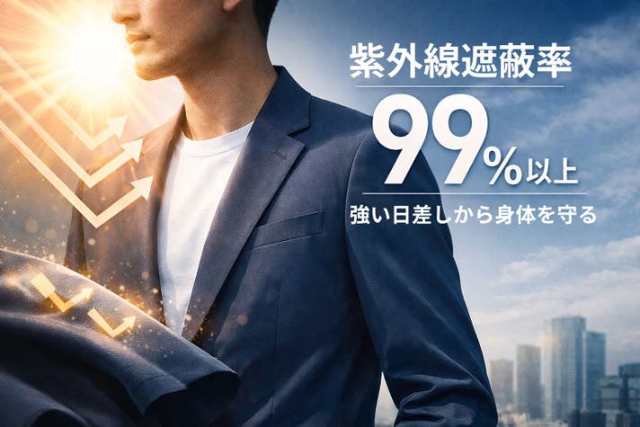「そのスーツ、突然の雨やコーヒーに耐えられますか?」