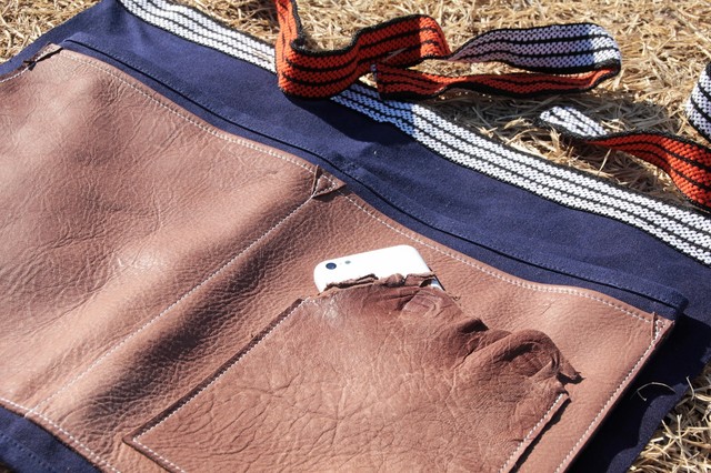 風合い豊かな鹿革と帆布生地のフィールドエプロンです。