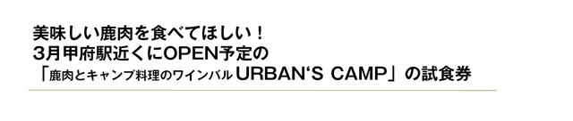 鹿肉活用の挑戦: 鹿肉とアウトドア料理のワインバル urban’s campの鹿肉試食券