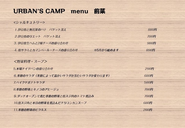 ・飲食事業 : 鹿肉とアウトドア料理のワイン居酒屋 urban's camp