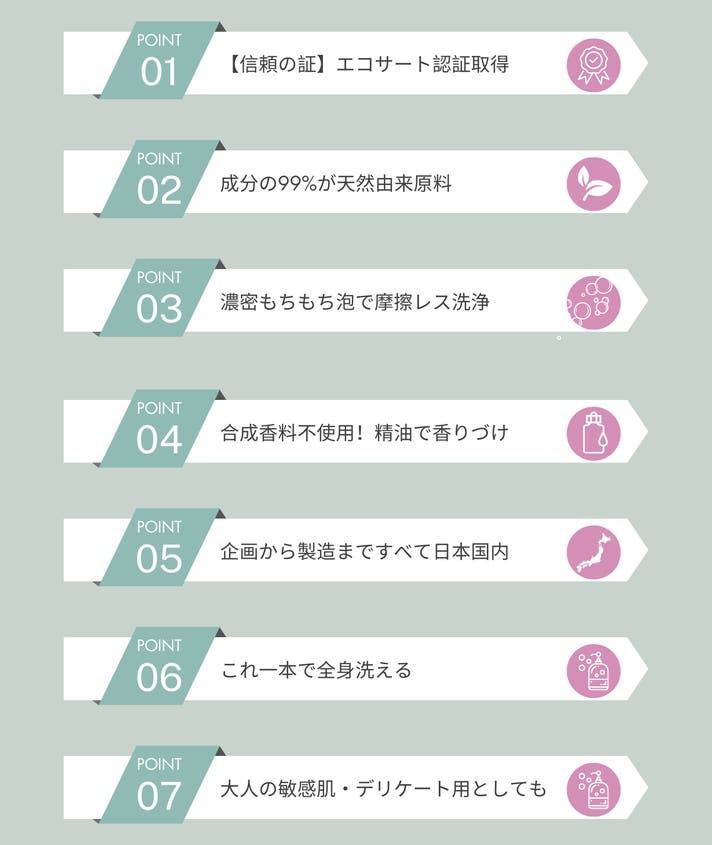 - 親子で使える!もちもち泡が大人の敏感肌にも優しく洗えて、これ1本で全身ケア