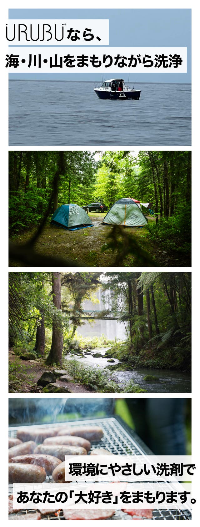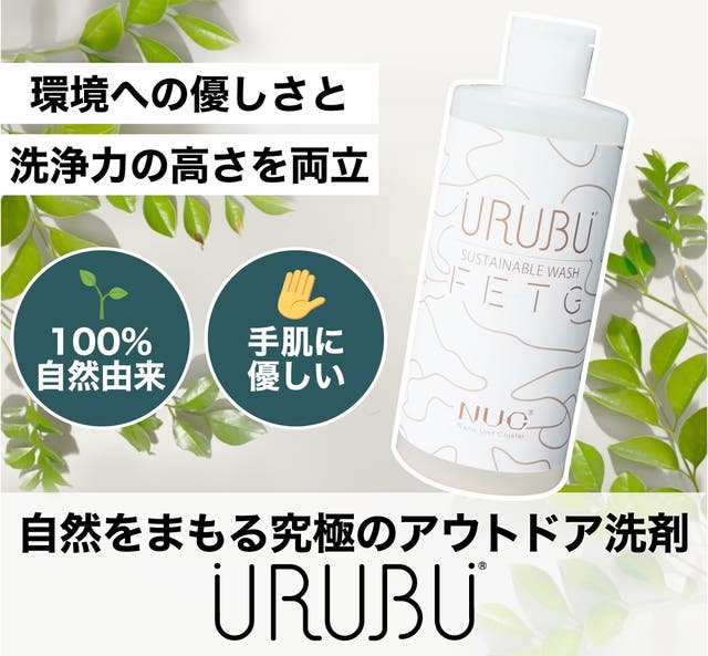 URUBU®︎ SUSTAINABLE WASHは、自然に優しい洗浄成分で環境負荷を極力抑えることに成功しました。そのため、汚水処理設備が整っていない山・川・海でも使用できます。