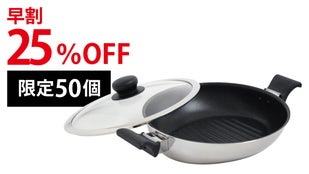 創業74年の調理器メーカー「ウルシヤマ金属工業株式会社」がお客様の声を基に開発した商品「底が楕円のグリルパン」は本体の形状は正円で焼面の底の部分が楕円形状になっているグリルパンです。