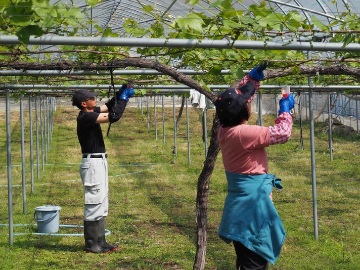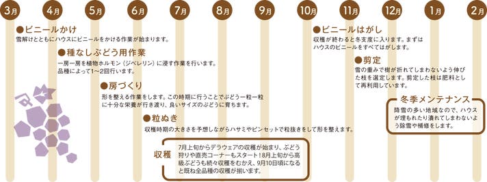 朝早くから暗くなるまでのぶどうの手入れ作業や発送など