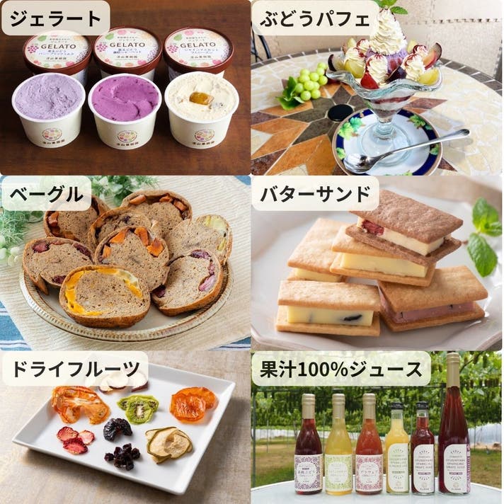 ジェラート・ドライフルーツ・ジャム・ジュース・ワインなど