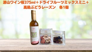 漆山ワイン桜375ml+ドライフルーツミックスミニ+高級ぶどうレーズン 各1個