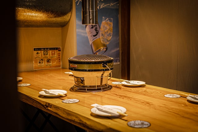七輪の炭火で焼いてお楽しみいただくスタイルは、肉を知り尽くした「牛一頭家」社長のこだわり。