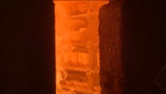 岸岳周辺の土・藁灰釉の特性を活かす窯焚きです。火の勢いが強い、天井が一直線の割竹式登り窯で24時間ほどかけて焼き上げます。耐火度の高い土と釉、1400度に迫る高温焼成より丈夫で美しく、手触りも滑らかな斑唐津が誕生します。