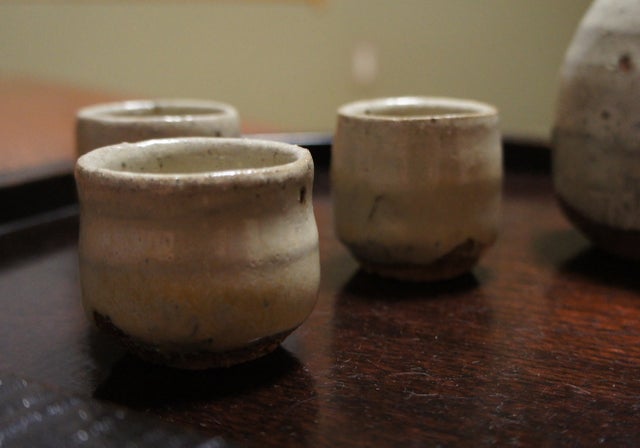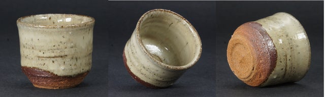 少し寒くなってきた晩秋には熱燗でも。土味の効いた、掌の中で弄べそうなコロンとした猪口、掻くように削り出されている高台も愛嬌があります。テキーラなどのショットグラスにも如何でしょうか。