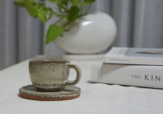香り豊かな珈琲を堪能できそうな口径。小さくて丸みのある形が可愛いカップです。ソーサには釉の濃淡があり、カップを置く位置で違った景色を楽しめます。また単独でチョコレートをのせたり、和菓子をのせたり、醤油さしの受け皿にしたりと多様な使い方ができてとても便利なお皿です。