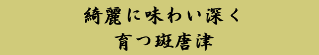 - 斑唐津は「唐津岸岳付近の土」 「餅藁を原料とする釉」「赤松を燃料とする高温焼成」でつくられます
