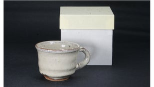 斑唐津コーヒーカップ1客・三里窯しおり・化粧箱付き