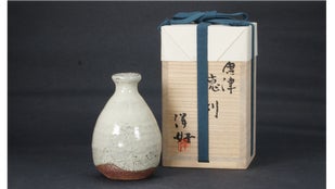 斑唐津徳利・紐付き二方山共箱・三里窯しおり