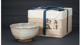 斑唐津茶碗1客・三里窯しおり・紐付き四方山共箱付き