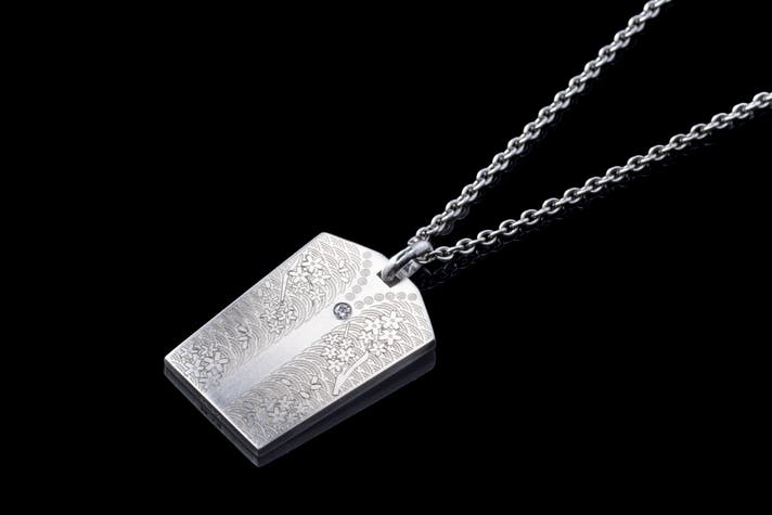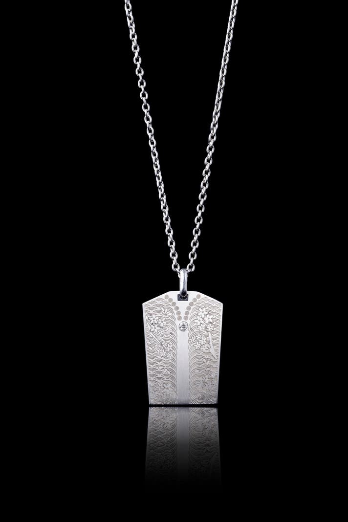 日本の「男」を彷彿とさせる和彫り模様を刻印したペンダント。