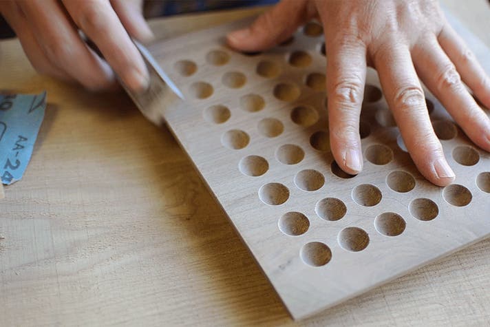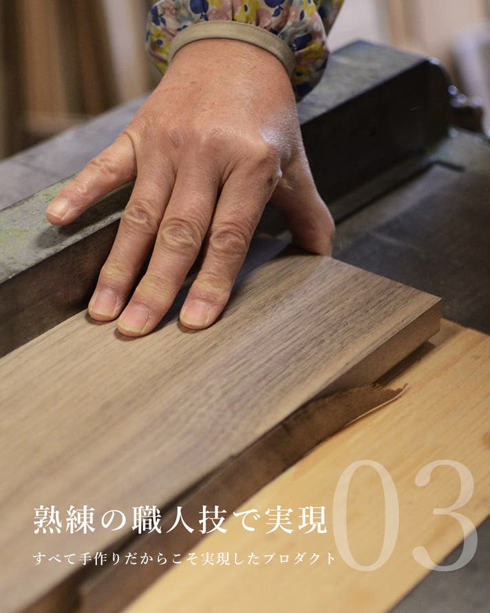 熟練の手仕事による仕上がりは美しく、なにより温かみがあります。手に触れる木の道具を長年作り続けてきた木工所だからこそ作り上げることができました。