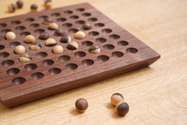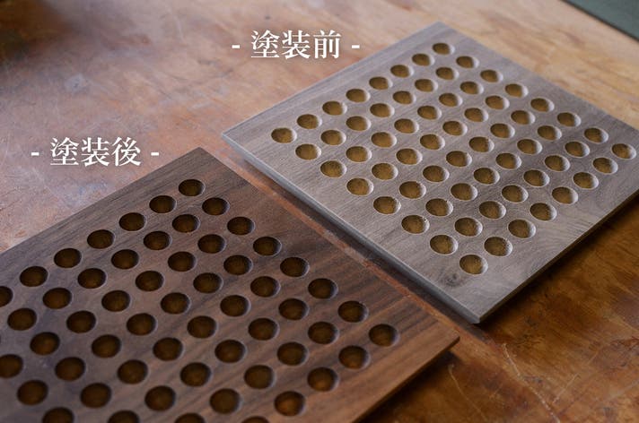 【coron】は大人のボードゲームとして、高級感と肌触りを追求し「オイル塗装」を施しています。木目の質感を残し、深い色合いを際立たせました。