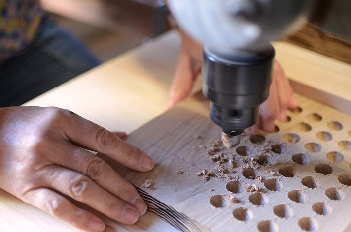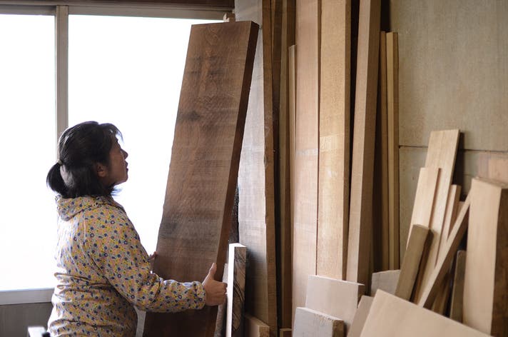 ひとつずつ異なる表情の天然木の特性を見抜き、最適な加工を実施。