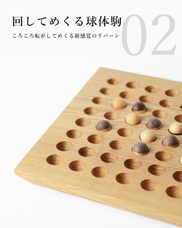 従来のような平らな駒ではなく、指でころころとひっくり返すことができる新感覚のリバーシです。