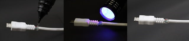 UVを当てるまで固まったり乾燥したりしないので、あせって作業する必要はなく、取り付ける位置・角度などを十分に調整してから固定することができる