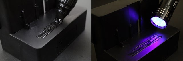 2.「UV Bondy MEGAを厚みが1~2mmになるよう塗布 ⇒ UV LEDライトを4秒以上あてる」を繰り返し、上塗りして盛り上げるように成形してください。
