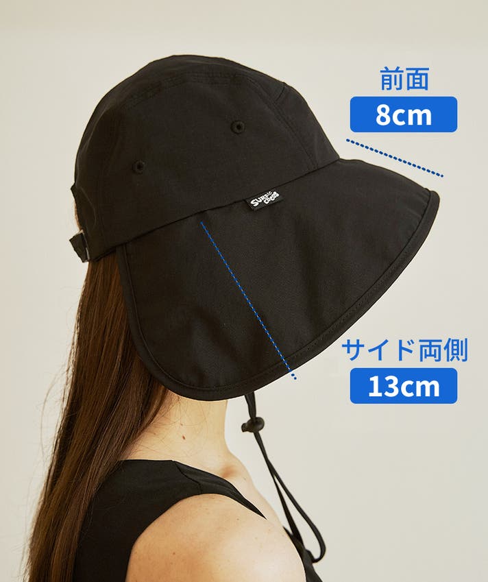 - 【頬ガード】3面のツバを広く設計し、「頬骨エリア」までつばを拡張。物理的に紫外線カット!