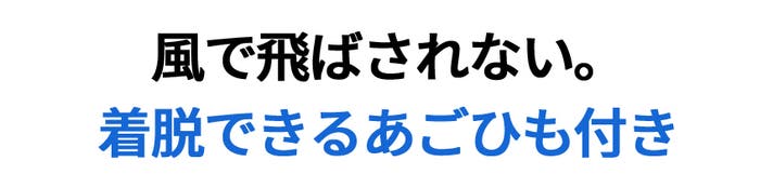 A. 深く着用できる構造で頭にフィットしますので、今までの自社UVハットに比べて風による浮きやズレを抑制しています。