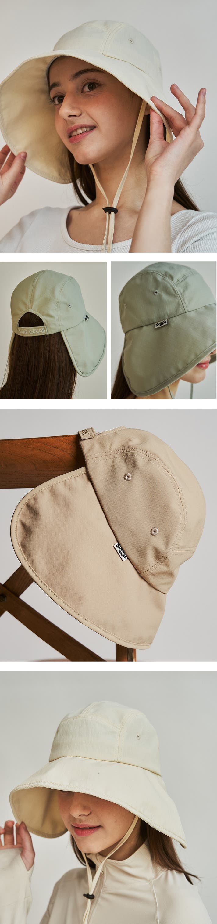 COCOSワイドサンハットは、顔の輪郭を包み込むように設計された立体ラインにより、丸顔・面長・ベース型など、顔型を選ばず自然にフィットします。