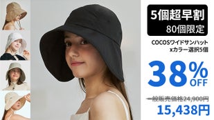 「5個超早割38%OFF-80個限定」COCOSワイドサンハットx5個