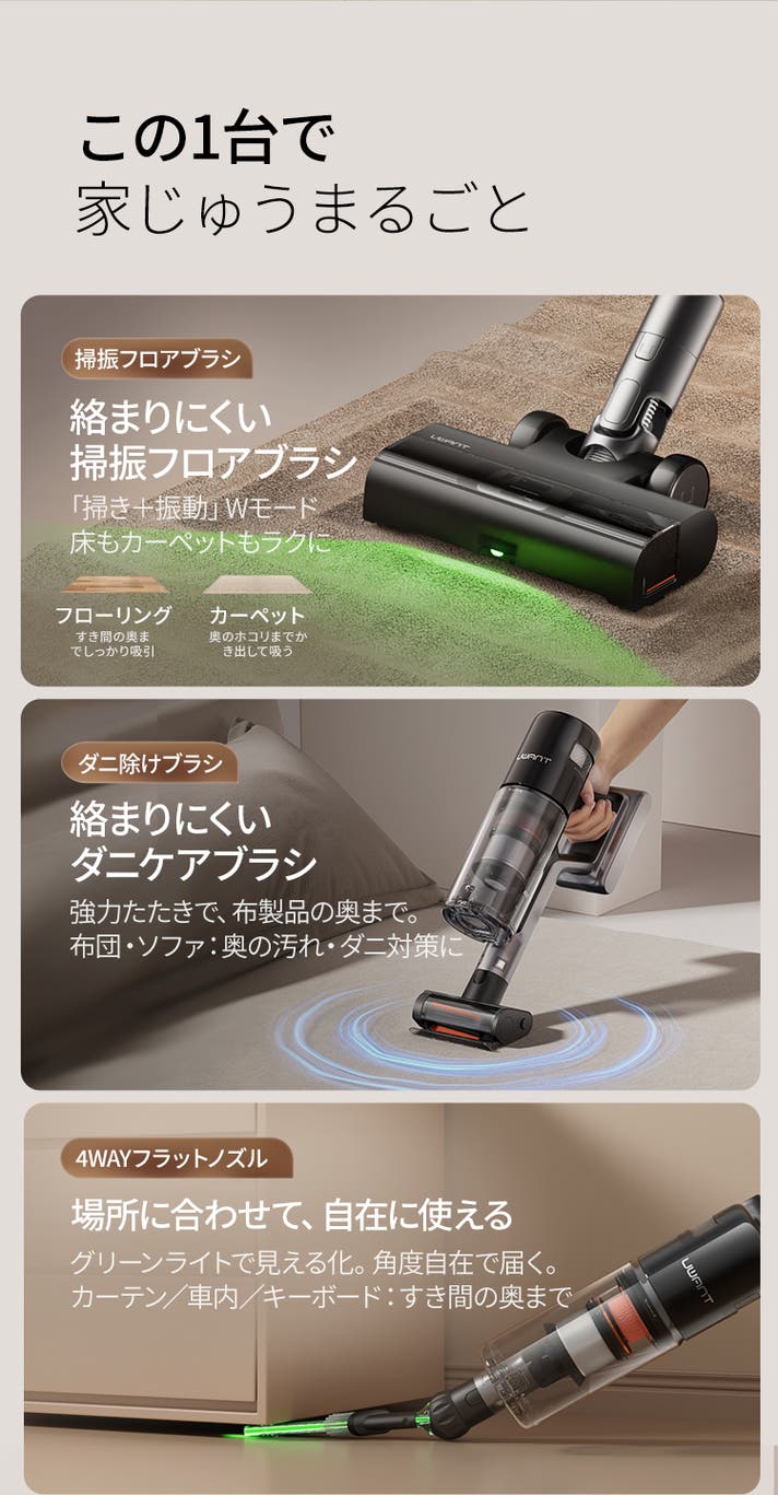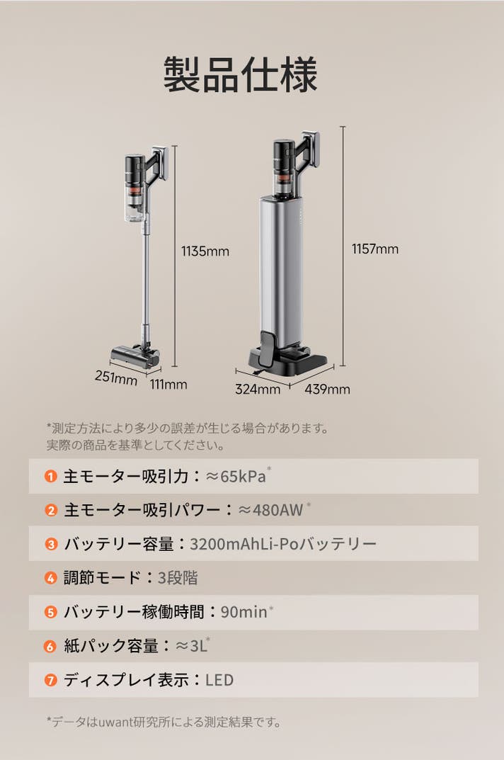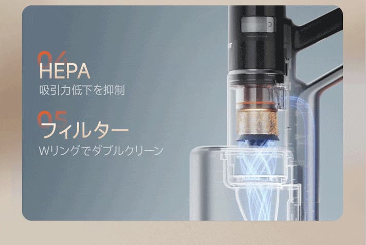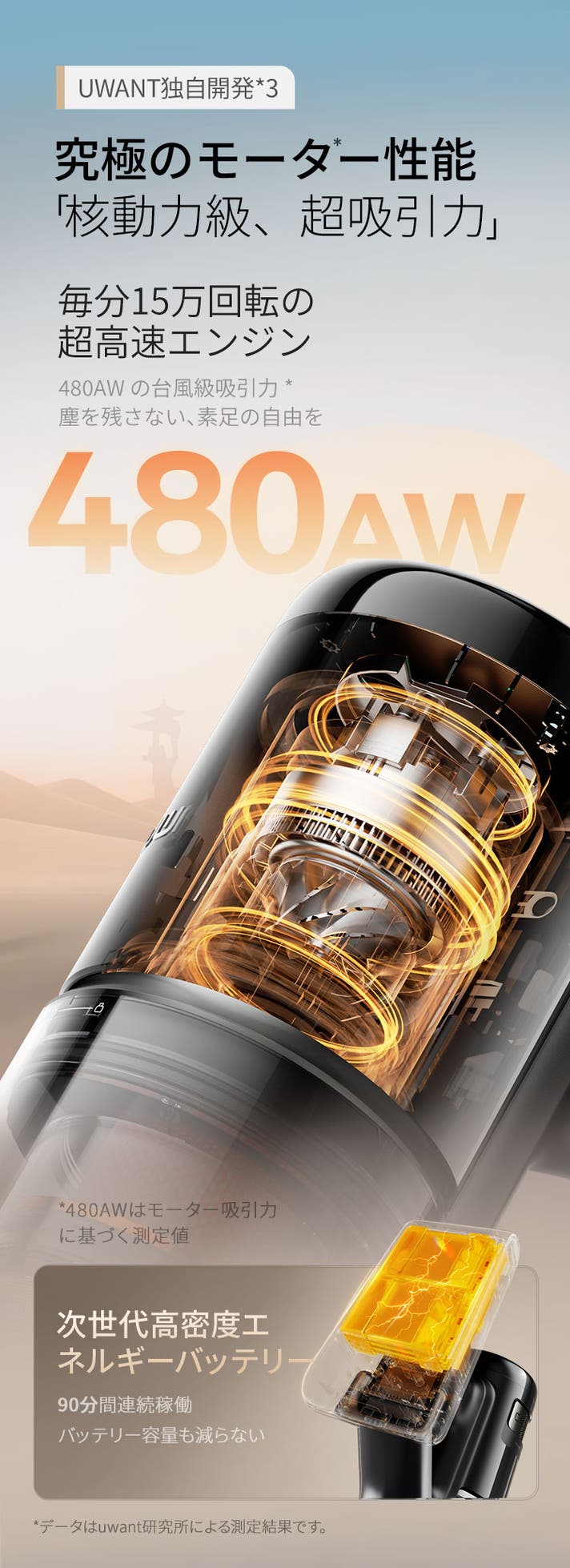 - 業界上位クラスの構成!ブランド史上最強モーター×大容量バッテリーで、優れた掃除体験。