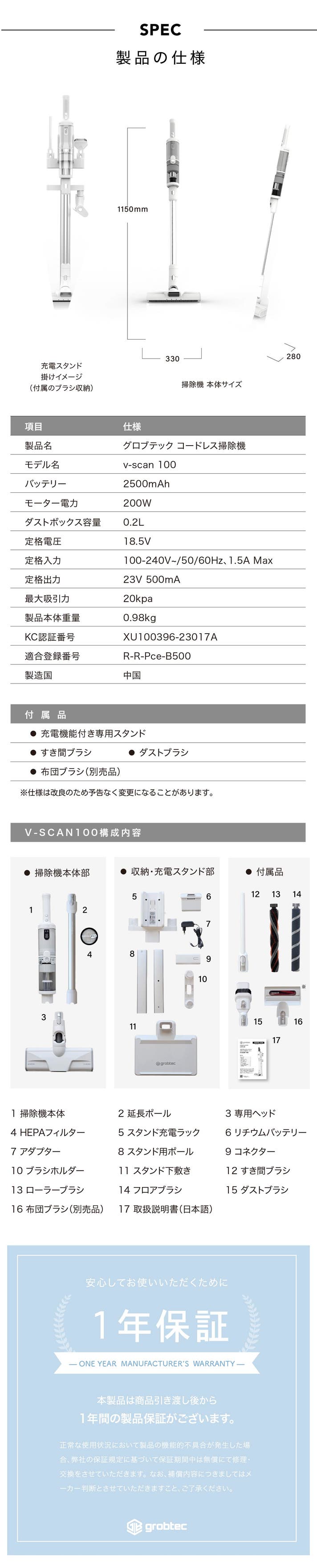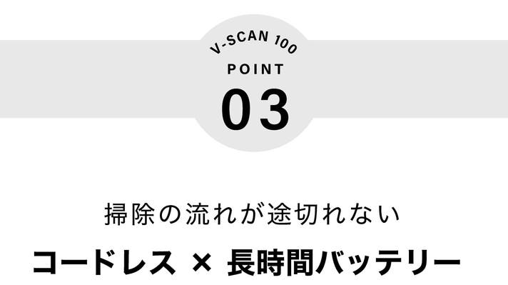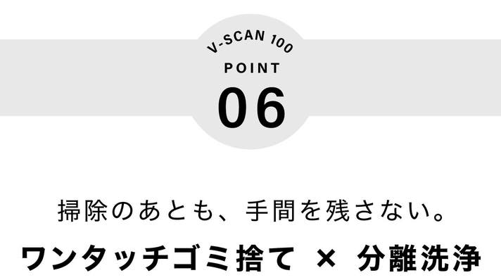 V-SCAN100のダストカップは、掃除後のお手入れまで考えた構造です。ゴミを捨てたあとは、軽く拭くだけで清潔を保ちやすく、日常のメンテナンスが負担になりません。「使ったあとが面倒」にならないことが、掃除を続けられる理由になります。