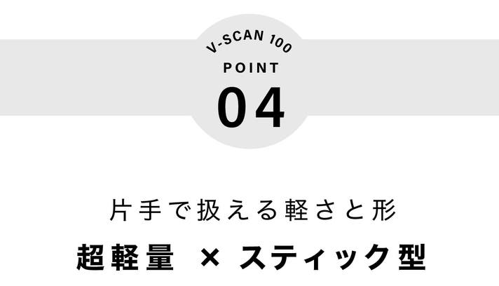 A. V-Scan100は本体重量約1.9kgの軽量設計です。持ち上げる、向きを変える、隙間に差し込むといった動作も負担になりにくく、日常使いを想定しています。