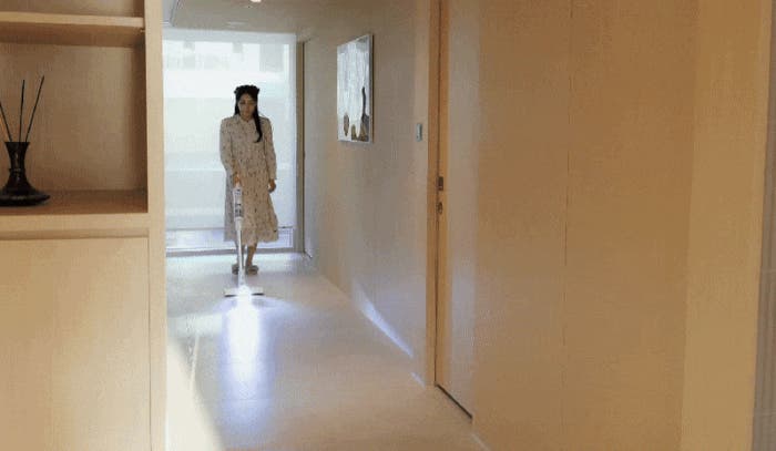ヘッドが180度回転し、床に沿って自然に動く床密着設計。ベッドやソファの下など、手を伸ばしにくい場所にも無理なく入り込みます。姿勢を変えずに掃除できるため、隅や奥までスムーズに掃除が進みます。