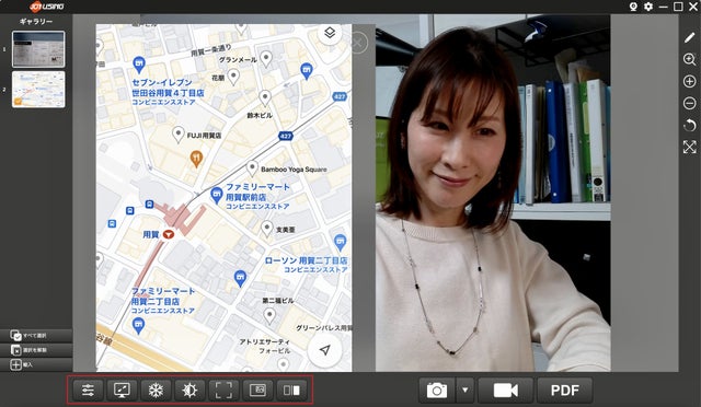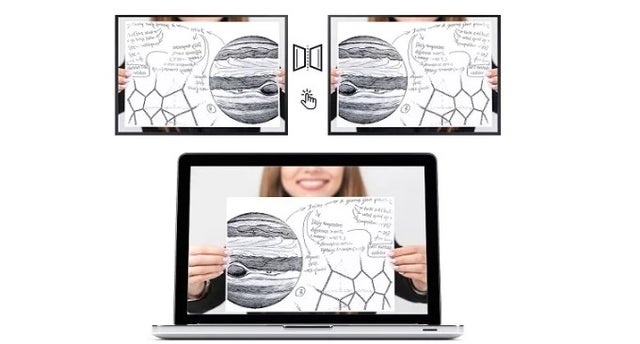 Zoomなどのビデオミーティングの際、映し出された書類が左右反転して見えた経験はありませんか? 「ミラー」機能があり、ボタンを押す事で簡単に補正できます。また90度単位で360度回転させる事もできます。