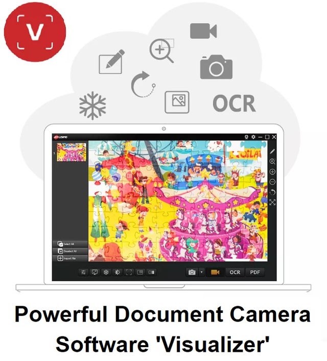 「Visualizer」ソフトウェアを使用します。メーカーHPまたは弊社Next Gear HPよりダウンロード頂けます。ソフトウェアの使い方を説明した弊社制作による日本語説明書が本体に付属します。