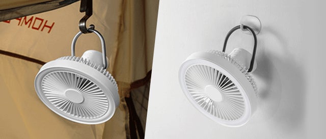 - 送風・照明1台2役!キャンプ中のピクニックやテント内では吊り下げ照明と送風機としての兼用可能。