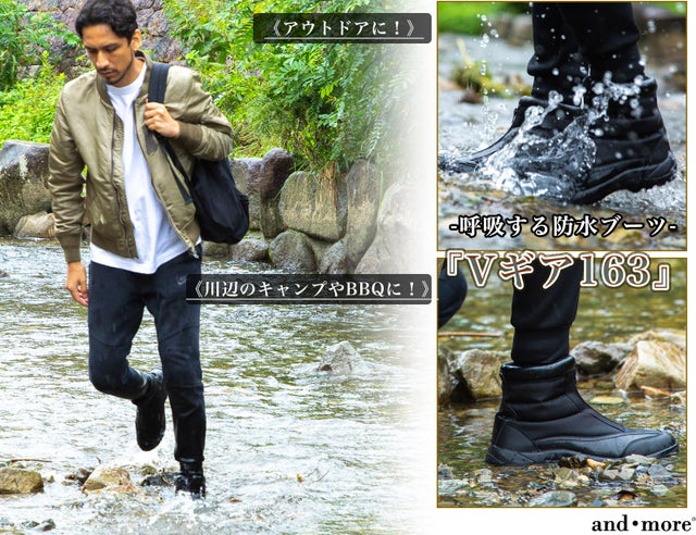 - 『Vギア163』は突然の雨や悪路でもガンガン歩ける防水ブーツ!