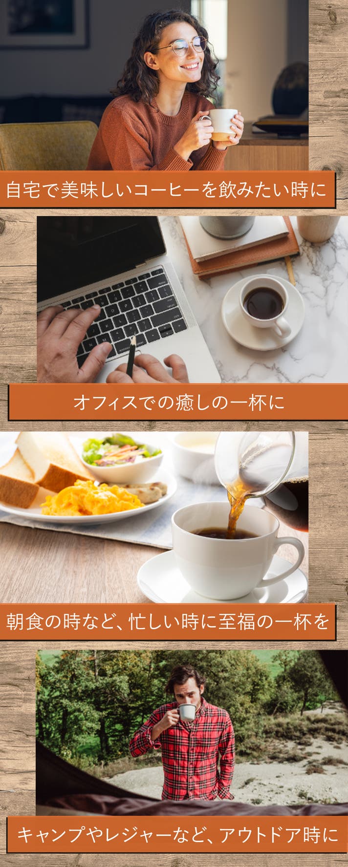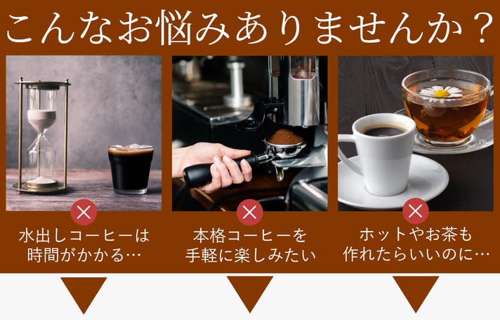 味の妥協や待ち時間によるストレスがなく、どんな場所でも満足のいくコールドブリューコーヒーが楽しめます!