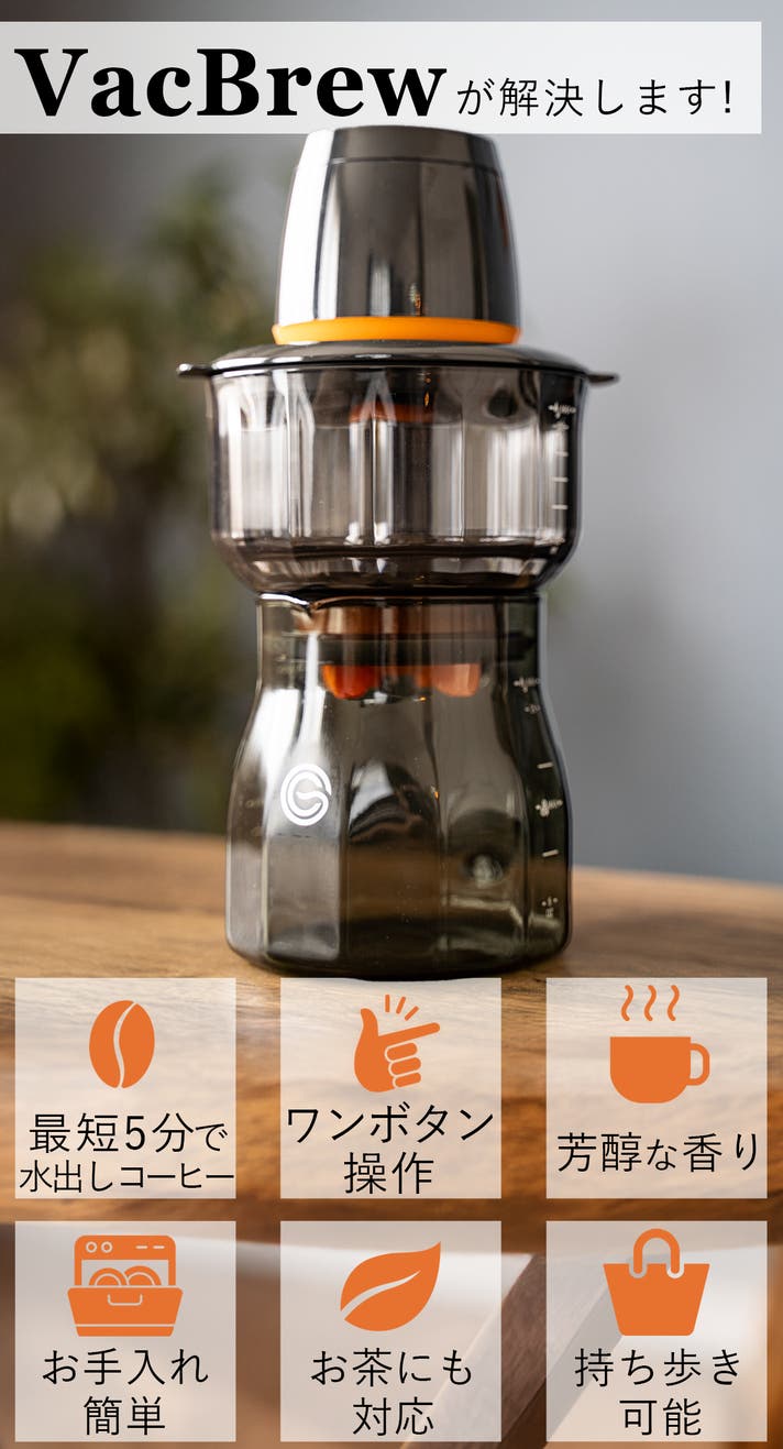 VacBrewによるコールドブリューは、従来の長時間待つスタイルとは異なり、最短5分で滑らかな味わいを実現します。