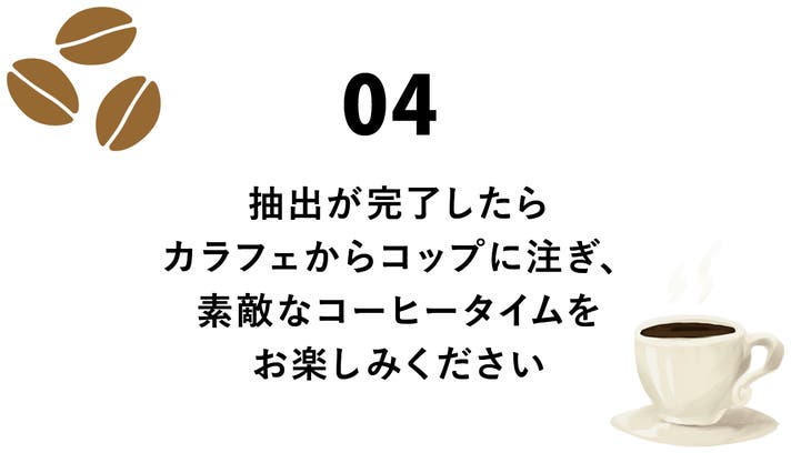 - 加圧抽出の仕組みで、風味の豊かさや奥深さを最大限に引き出す!ホットコーヒーやお茶も使用可能