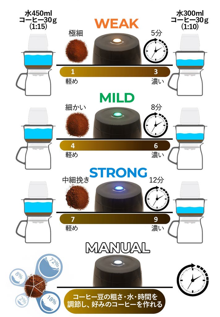 軽めの抽出でも、より濃い抽出でも、あなたの好みに調整することが可能です♪