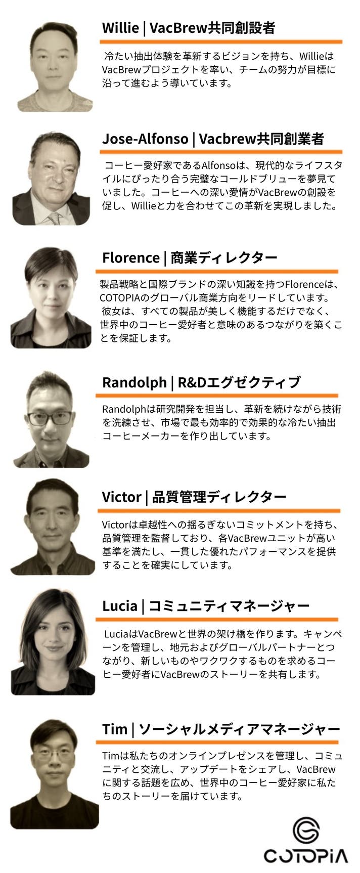 これ1枚でVacBrewがインテリアを華やかに! VacBrewは、シンプルで革新的なアイデアから始まり、コールドブリューコーヒーの体験を革命的に変えることを目指しています。高品質で便利なコーヒーをいつでもどこでも楽しみたいという需要に応えるため、コンパクトで使いやすいデザインを目指しました。高度な真空技術を使用して抽出プロセスを改善し、初期のプロトタイプが生まれました。 開発には広範な研究と数多くのプロトタイプが含まれ、最適な風味抽出と使いやすさを追求しました。ユーザーからの貴重なフィードバックが最終的なデザインに大きな影響を与えました。 「ひらめき」の瞬間は、VacBrew専用の真空ポンプを統合した時で、最大-450mBarの圧力を達成し、抽出時間を大幅に短縮しながら、コーヒーの豊かな風味を保つことができました。この革新により、使いやすいワンタッチコントロールが加わり、従来のコールドブリュー機器と差別化されました。 今後はデザインの完成、ユーザーエクスペリエンスの向上、量産準備を進め、VacBrewをコーヒー愛好者に届けることを楽しみにしています。 携帯性にも優れ、自宅はもちろん職場やアウトドアなど、さまざまなシーンで手軽に本格的なコールドブリューが楽しめます。 Q.VacBrew とは何ですか? A.VacBrewは、実用新案特許取得済みの真空技術を駆使し、わずか数分で豊かで滑らかなコーヒーの風味を引き出す革新的なコールドブリューコーヒーメーカーです。 Q.VacBrew はどのように機能しますか? A.VacBrewは、最大-450mBarの強力な真空状態を作り出す高効率真空ポンプを搭載しています。 Q.VacBrew はお茶を淹れるのに使えますか? A.はい、VacBrewは多機能で、コーヒーと紅茶の両方を淹れることができます。プログラムが抽出プロセスを調整し、茶葉やコーヒー粉の風味を最大限に引き出します。 Q.VacBrew が他のコールドブリューコーヒーメーカーと違う点は何ですか? A.VacBrewは、抽出プロセスを加速し、風味を高める実用新案特許取得済みの真空技術で際立っています。 Q.VacBrew は掃除しやすいですか? A.はい、真空ポンプを除く VacBrew のすべての部品は取り外し可能で食器洗い機で洗えるため、清掃やメンテナンスが簡単です。 Q.VacBrew 醸造容器の容量はどれくらいですか? A.VacBrew の抽出容器には容量目盛りが付いており、コーヒーと水の最適な比率を測るのに役立つため、毎回一貫した抽出が可能になります。 Q.VacBrew を屋外で使用できますか? A.はい、VacBrewは屋内でも屋外でも使えるように設計されています。コンパクトで持ち運びやすいデザインなので、どこにいても美味しいコーヒーをお楽しみいただけます。 Q.VacBrew はどのように使いますか? A.VacBrewの使い方は簡単です。抽出容器にお好みの量のコーヒー粉と水を入れ、ワンボタンで適切な抽出モードを選択するだけで、あとは真空ポンプにお任せください。わずか数分でコールドブリューコーヒーが出来上がります。 Q.VacBrew を掃除するにはどうすればいいですか? A.抽出後は、VacBrewのパーツ(真空ポンプを除く)を分解し、食器洗い機で簡単に洗浄できます。組み立てる前に、すべてのパーツが完全に乾いていることを確認してください。 Q.VacBrew でコーヒーを淹れるのにどれくらい時間がかかりますか? A.VacBrew は真空技術のおかげで、わずか数分で濃厚で風味豊かなコールドブリューコーヒーを淹れることができ、従来のコールドブリュー法よりも大幅に速く淹れることができます。 Q.VacBrew の製造にはどのような材料が使用されていますか? A.VacBrewは、ホウケイ酸ガラス製のカラフェやBPAフリーの部品など、高品質で耐久性のある素材で作られています。すべての部品は日常的な使用に耐えられるよう設計されており、食品との接触も、もちろん問題ありません。 Q.VacBrew には特別なメンテナンスが必要ですか? A.VacBrewは定期的な清掃以外に特別なメンテナンスは必要ありません。最適なパフォーマンスを維持するために、真空ポンプとその他のすべての部品を清潔で乾燥した状態に保つようにしてください。 サポーターの皆さまから応援購入いただいた資金は、次の用途で大切に活用させていただきます。 ・商品仕入資金、輸送、サポーターの皆さまへの配送費 などに使わせていただきます。 皆さまからの応援購入を力に変え、より良く楽しい商品を送り出せるような体制作りとして役立たせていただきます。 ぜひ応援をよろしくお願いいたします。 弊社BRIGHT DIYはDIYをより簡単に楽しめるようにしたい。それから、国内のコミュニティをイノベーションを通して豊かにしていきたい。 「DIYのライフスタイル」を仲間に紹介したいと思い、マクアケでアイデアを発信しています。 弊社は『こんな商品があったら良いな』を叶えたい。 そんな想いで世界の商品の紹介と新しいテクノロジーの開発をしています。 ガジェット、工具、Iot製品をメインとして、 その他にも世界中のQOL(クオリティーオブライフ)を向上させてくれ