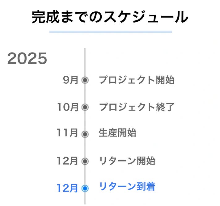 このプロジェクトはAll in型です。目標金額の達成に関わらず、プロジェクト終了日の2025年10月30日までに支払いを完了した時点で購入が成立します。