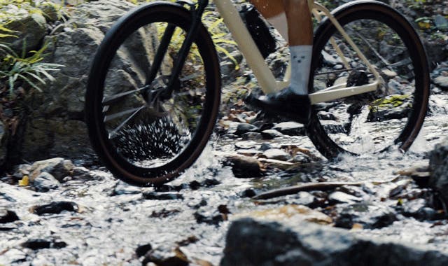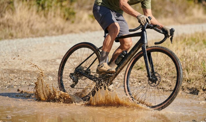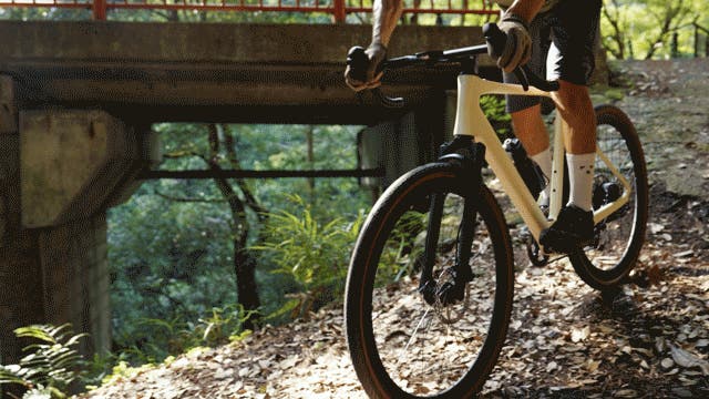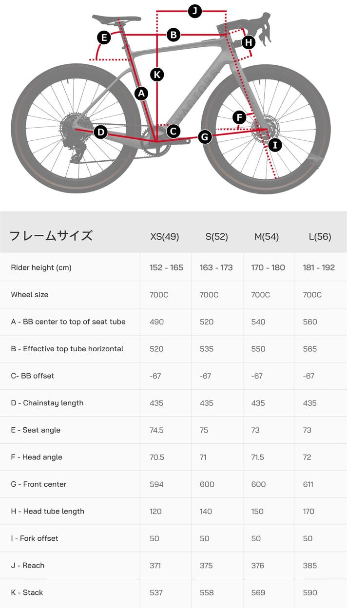 ロングホイールベースを基調としたグラベルジオメトリーと、ワイド幅ハンドルの組み合わせにより、舗装路から荒れた砂利道、下り坂に至るまで、安定感のあるコントロール性を実現しています。