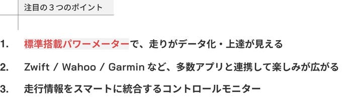 走りのフィードバックが得られる仕組みにより、自分の成長を感じながら楽しめます。標準でパワーメーターを内蔵しているため、ペダルを踏んだ力、速度、パフォーマンスがデータとして記録され、ライドを“見える化” できます。