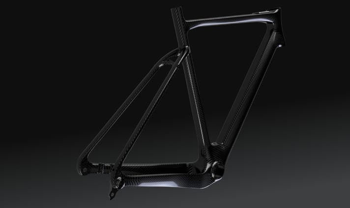 このフレームに合わせて電動ユニットを開発することで、フルコンポ対応と理想的なBB剛性を両立しています。