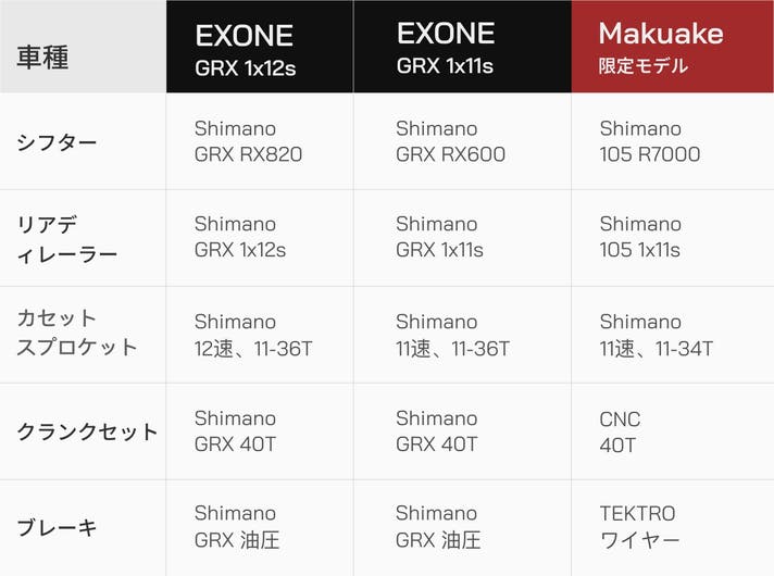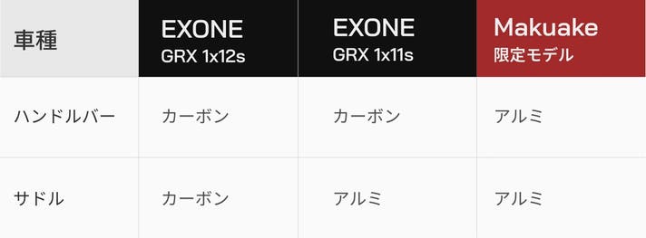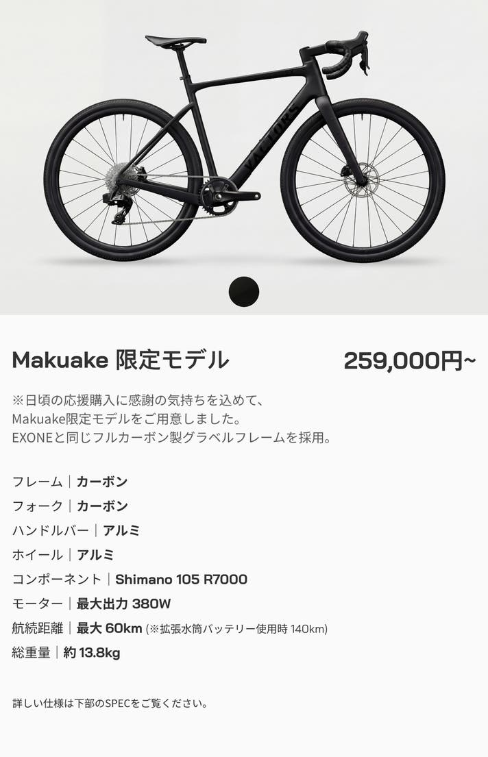 ※日頃の応援購入に感謝の気持ちを込めて、Makuake限定モデルをご用意しました。EXONEと同じフルカーボン製グラベルフレームを採用。