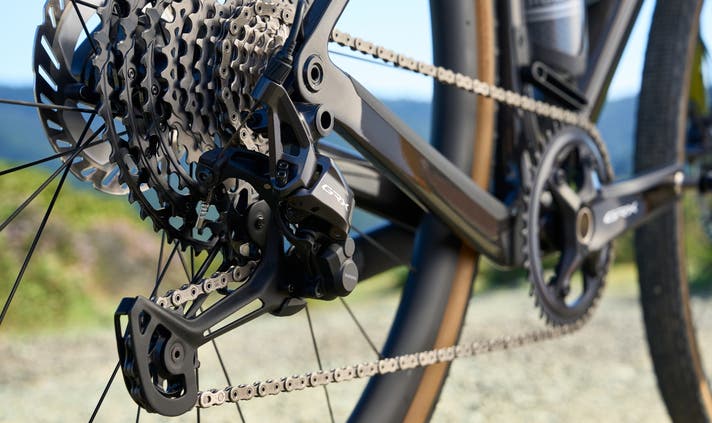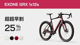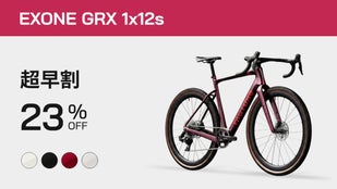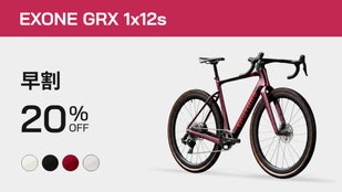 EXONE GRX 1x12s モデルには、グラベルライドを想定して設計された Shimano GRX RX820 12速ドライブトレインを採用。