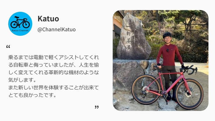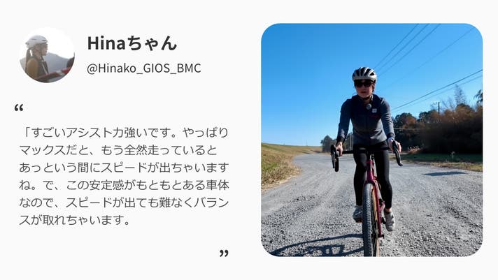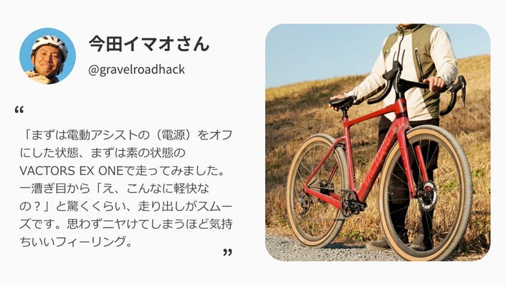 気づけば、もっと先へ漕ぎたくなる──そんなライド体験です。